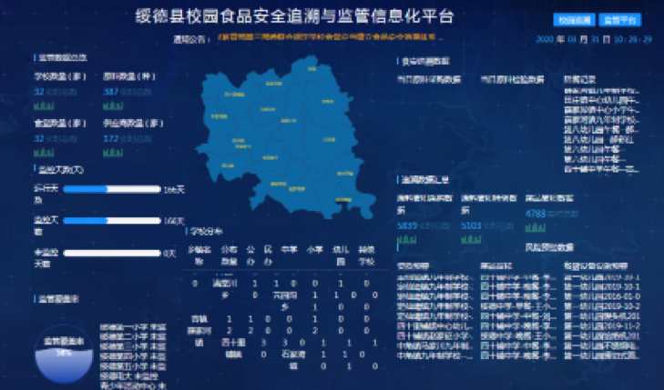 平臺(tái)與農(nóng)牧局、商務(wù)局模塊數(shù)據(jù)對(duì)接、全域食安數(shù)據(jù)綜合查詢、動(dòng)態(tài)數(shù)據(jù)統(tǒng)計(jì)分析、可視化監(jiān)管數(shù)據(jù)查詢?食品流向動(dòng)態(tài)智能分析?食安數(shù)據(jù)預(yù)警、網(wǎng)絡(luò)通訊等功能。
