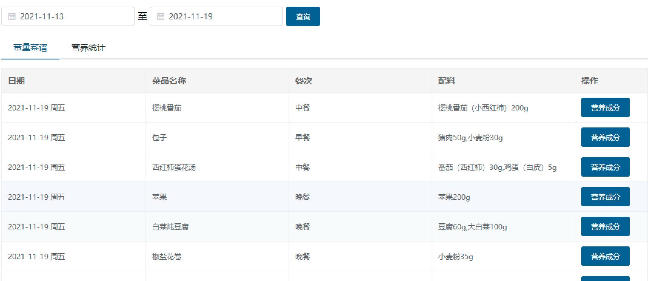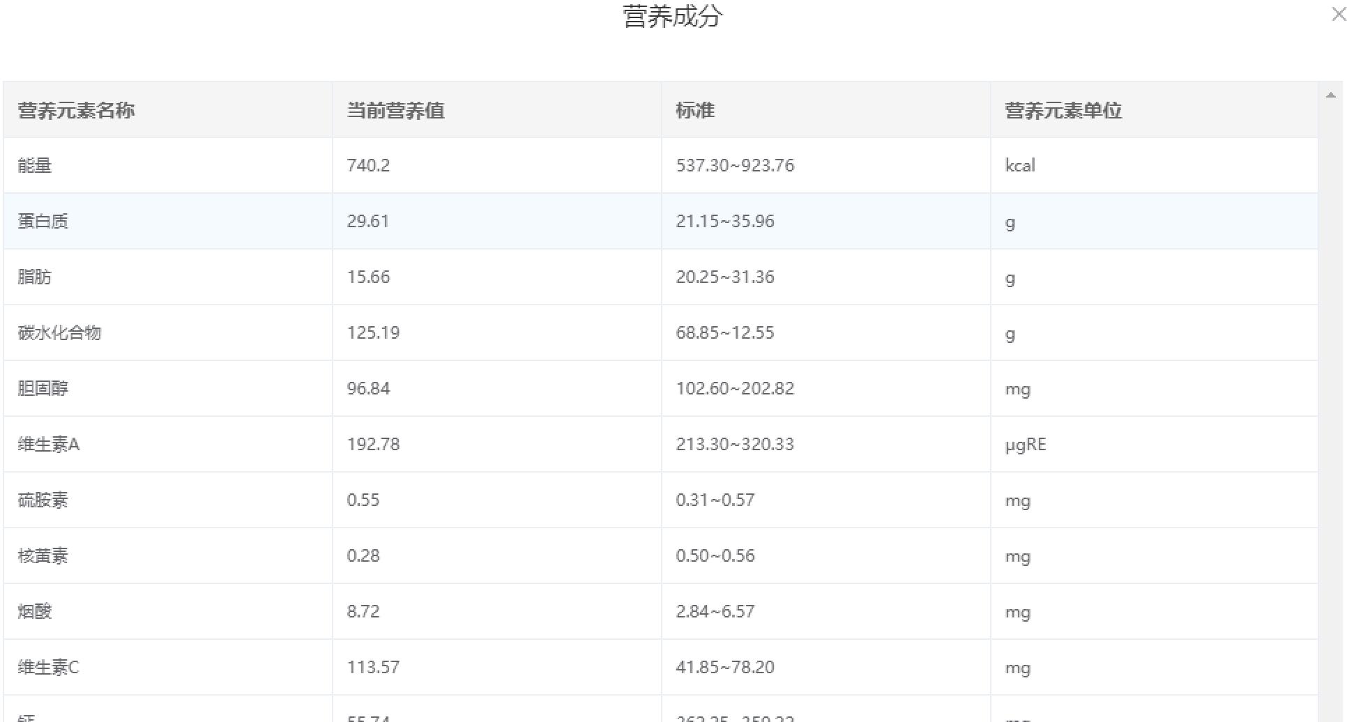 及時(shí)預(yù)警菜品營(yíng)養(yǎng)元素和食材類別搭配不均的問(wèn)腿,方便營(yíng)養(yǎng)專員及時(shí)加以應(yīng)對(duì)。